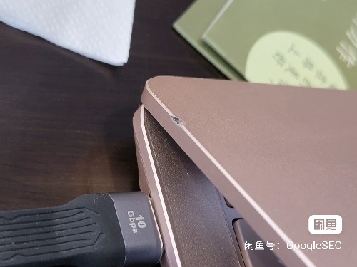 当时在咖啡厅,带内胆包不小心滑落,高度不高,但是正好磕到咖啡座底部的金属边上。那个磕也不是很大。