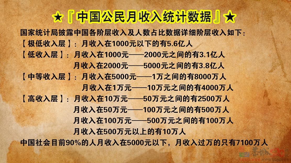 【原创】国家统计局披露中国公民各阶层月收入统计数据