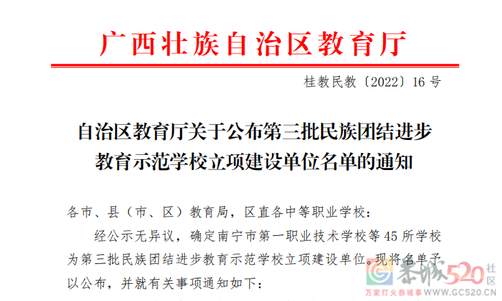 日前,自治区教育厅公布第三批民族团结进步教育示范学校立项建设单位名单。我市第十八中学、桂林市辰山小学 、恭城瑶族自治县县城第二中心小学 、全州县东山瑶族乡清水中心小学4所学校入选。据统计,我市民族团结进步教育示范学校立项建设单位数量在全区排名第三。