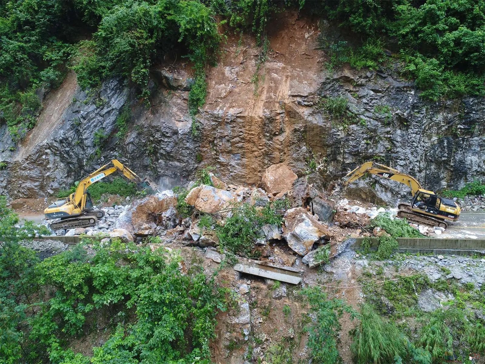 河池市迎来当地今年以来最强降雨,省道517线凤山县金牙乡外里村那门屯路段发生塌方。邹应康 摄 来源:河池融媒